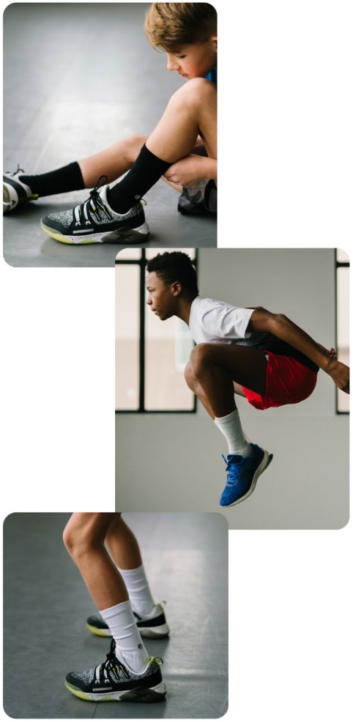 - Variable thickness for cushioning at the soles, toes, and heels.